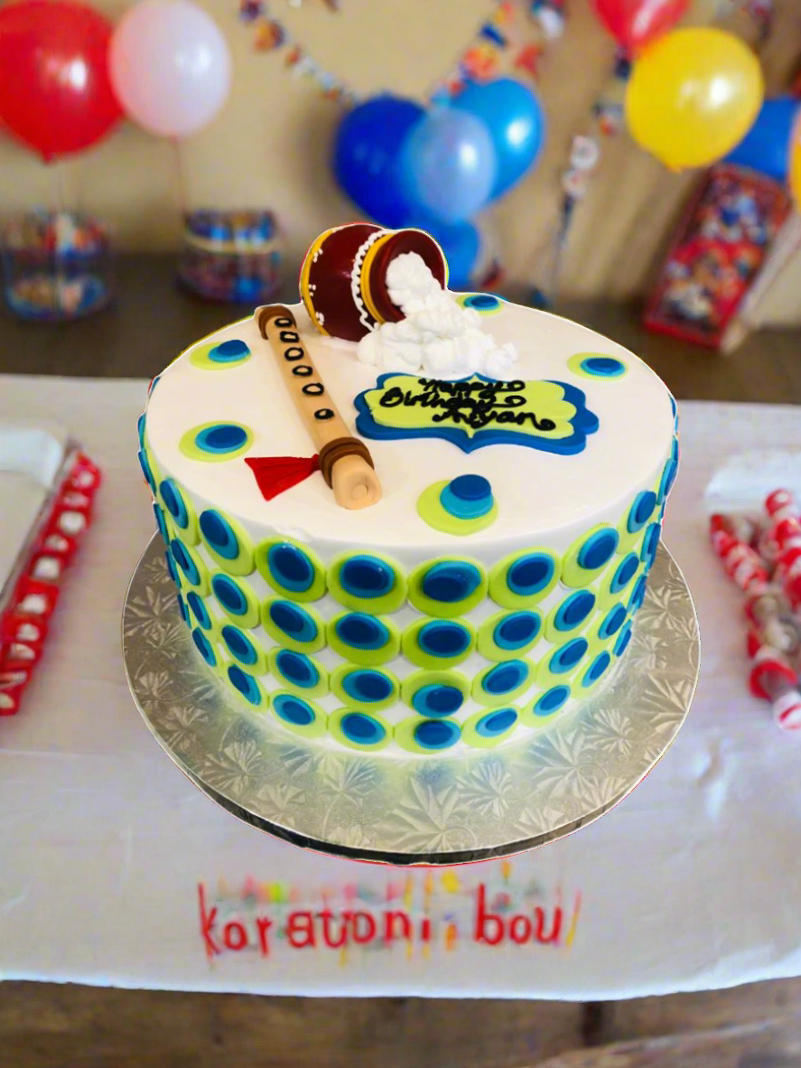 Celebrate the divine birth of Lord Krishna with our specially crafted Janmashtami cakes! Featuring traditional motifs like peacock feathers, flutes, and sacred symbols, our egg-free and nut-free cakes are perfect for your festive celebrations. Add a touch of divine sweetness to your blessed occasion.