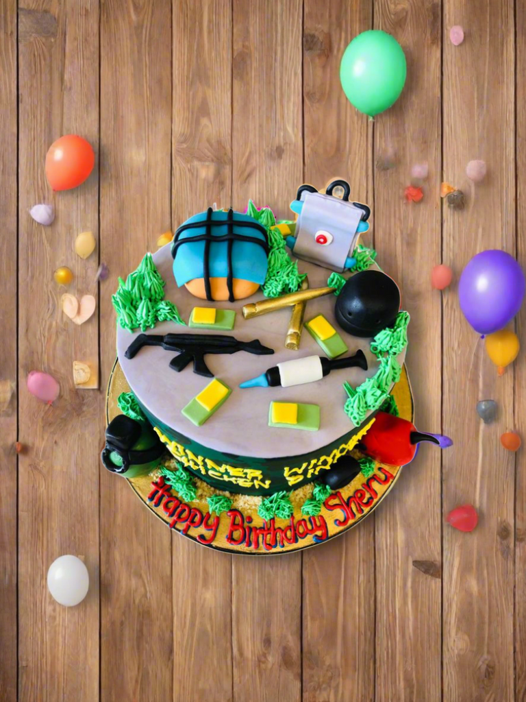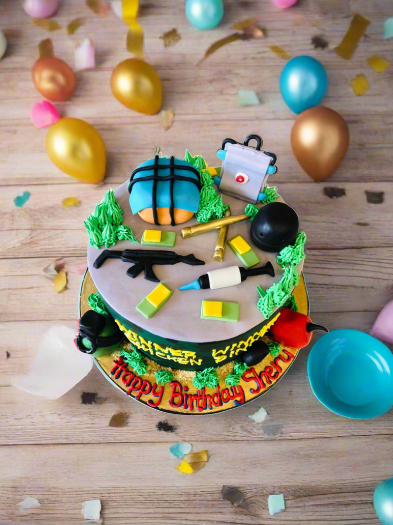 Engage in fun with our egg-free, nut-free PUBG Cake, available in vegan. Offering delivery in Mississauga, Brampton, Toronto, and reaching Milton, Oakville, Richmond Hill, Ajax, Vaughan. Perfect for "cake near me" searches.