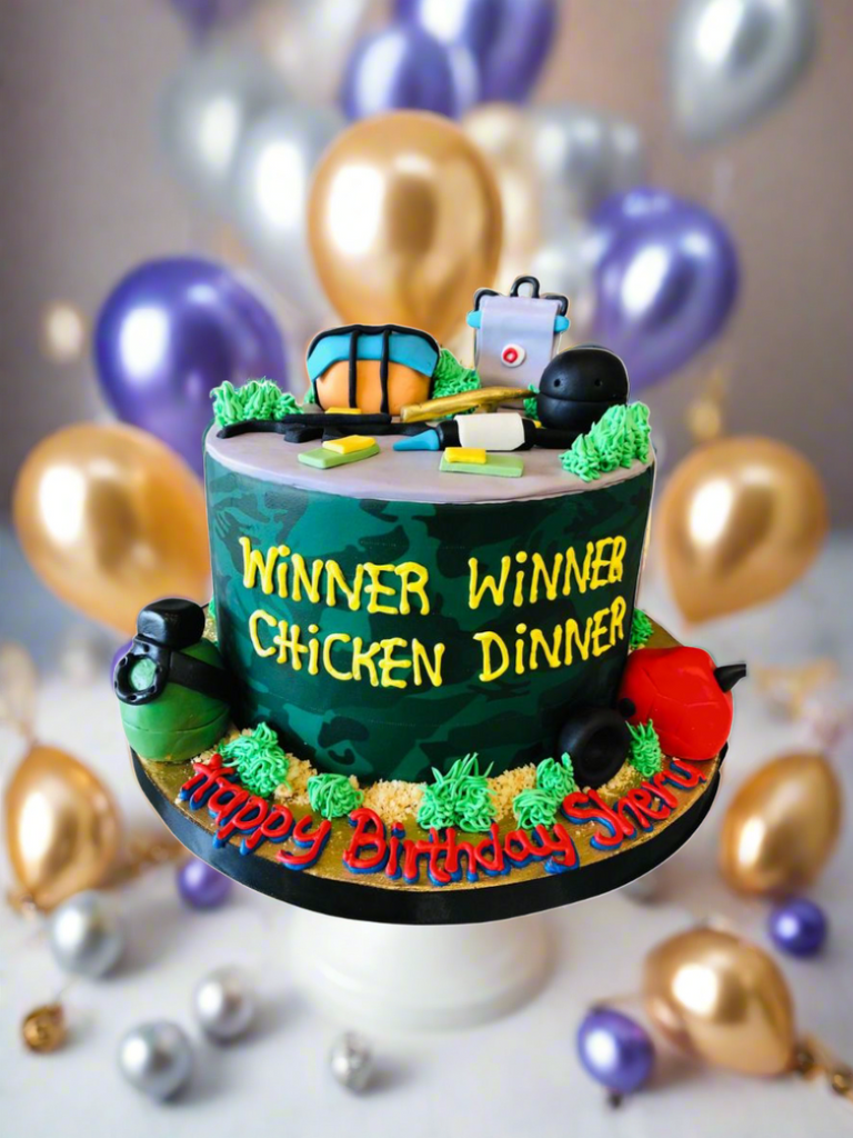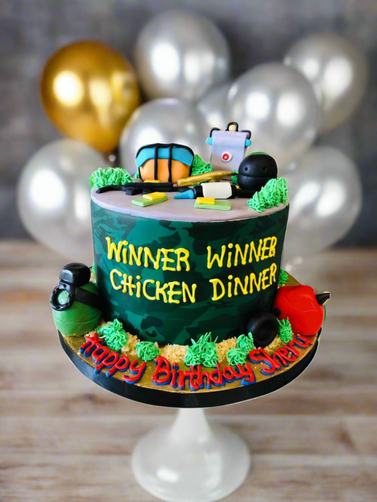 Step into the battlegrounds with our PUBG Birthday Cake, crafted to be egg-free and nut-free. Featuring dynamic designs inspired by the popular game, this cake is perfect for boys' birthday celebrations. Fully customizable with a variety of flavors, colors, and frosting options. Vegan orders are available upon request.